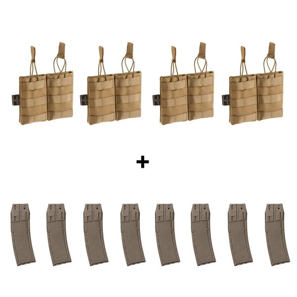 4x 5.56 Double Mag Pouch Coyote + 8x CF20 Pro Magazin earth Sparpaket 2
